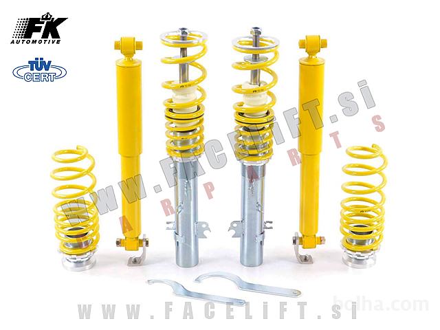 Nastavljivo športno vzmetenje FK Automotive. Vzmetenje je novo, z garancijo. Komplet vsebuje štiri amortizerje in štiri vzmeti.