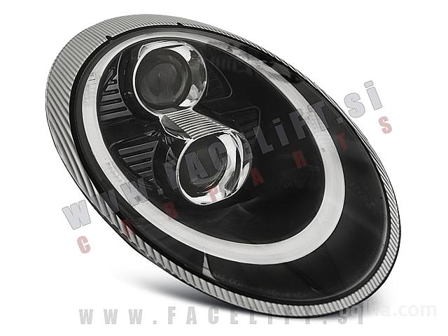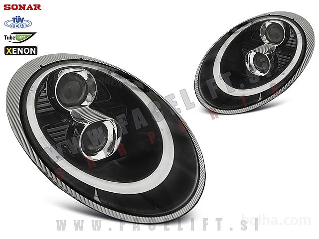 Xenon žarometi z LED Tube Light pozicijskimi lučmi in lečo. Žarometi so novi, z garancijo. V kompletu prejmete par, levi in desni žaromet.