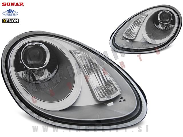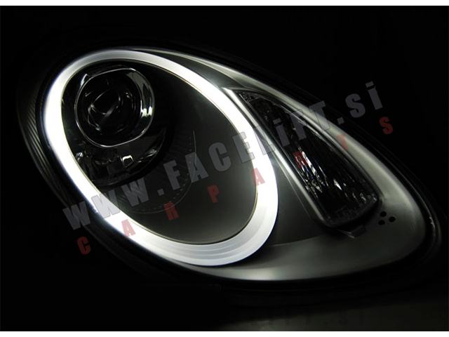 BI-xenon žarometi z LED TubeLight pozicijskimi lučmi in lečo. Žarometi so novi, z garancijo. V kompletu prejmete par, levi in desni žaromet.