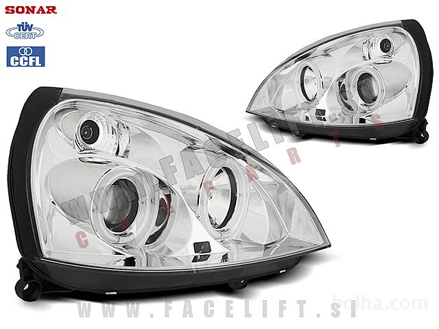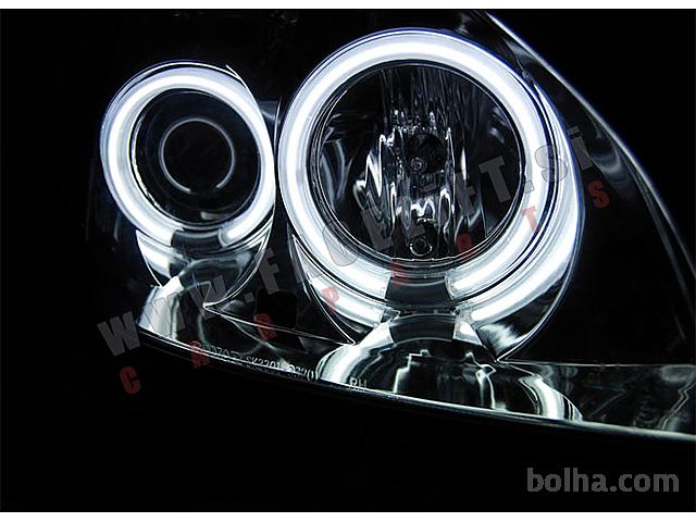 Žarometi z CCFL Angel Eyes obročki in lečo. Žarometi so novi, z garancijo. V kompletu prejmete par, levi in desni žaromet.