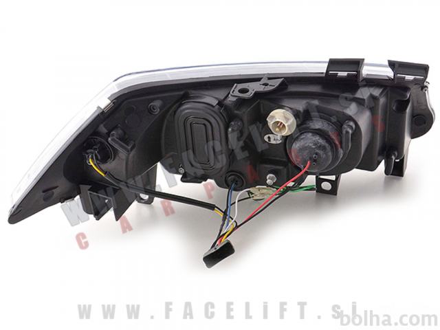 Halogenski žarometi z LED diodami za pozicijske luči in lečo za kratki snop. Žarometi so novi, z garancijo. V kompletu prejmete par, levi in desni žaromet.