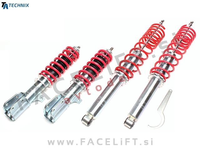 Nastavljivo vzmetenje (gewinde) TA Technix. Vzmetenje je novo, z garancijo. Komplet vsebuje štiri amortizerje, štiri vzmeti in ključ za nastavitev višine.