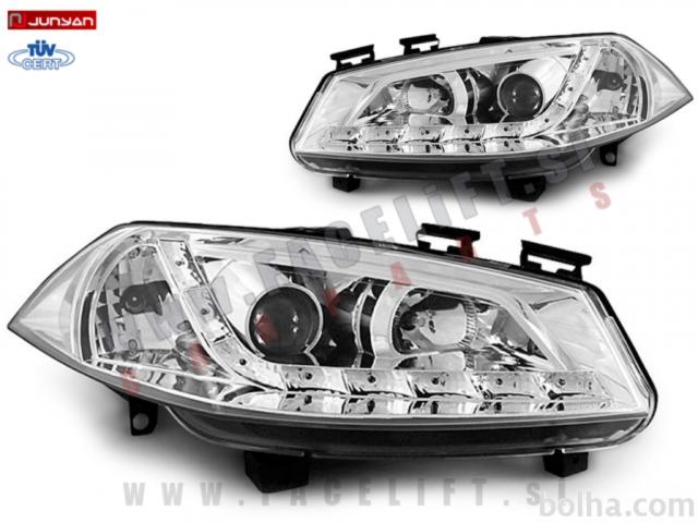 Halogenski žarometi z LED diodami za pozicijske luči in lečo za kratki snop. Žarometi so novi, z garancijo. V kompletu prejmete par, levi in desni žaromet.