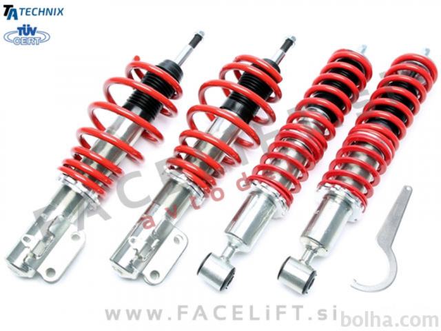 Nastavljivo vzmetenje (gewinde) TA Technix. Vzmetenje je novo, z garancijo. Komplet vsebuje štiri amortizerje, štiri vzmeti in ključ za nastavitev višine.