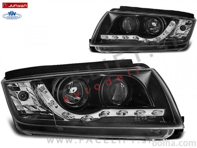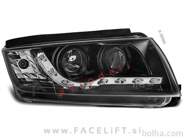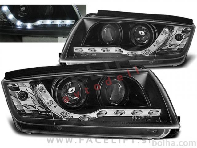 Halogenski žarometi z LED diodami za pozicijske luči in lečo za kratki snop. Žarometi so novi, z garancijo. V kompletu prejmete par, levi in desni žaromet.