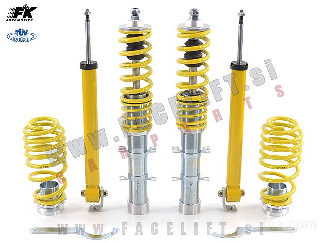 Nastavljivo vzmetenje (gewinde) FK. Vzmetenje je novo, z garancijo. Komplet vsebuje štiri amortizerje, štiri vzmeti in ključ za nastavitev višine.