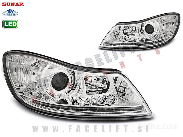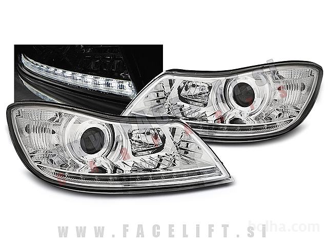 Žarometi z LED pozicijo in lečo. Žarometi so novi, z garancijo. V kompletu prejmete par, levi in desni žaromet.