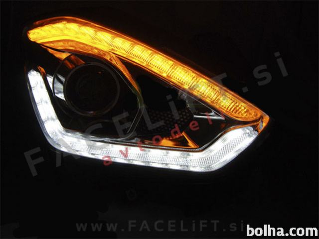 Halogenski žarometi z LED dnevnimi lučmi (DRL), lečo za kratki in dolgi snop in dinamičnim LED smernikom (DTS). Žarometi so novi, z garancijo. V kompletu prejmete par, levi in desni žaromet.