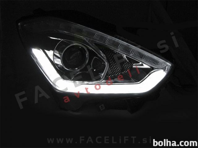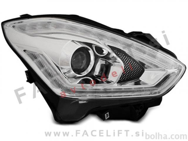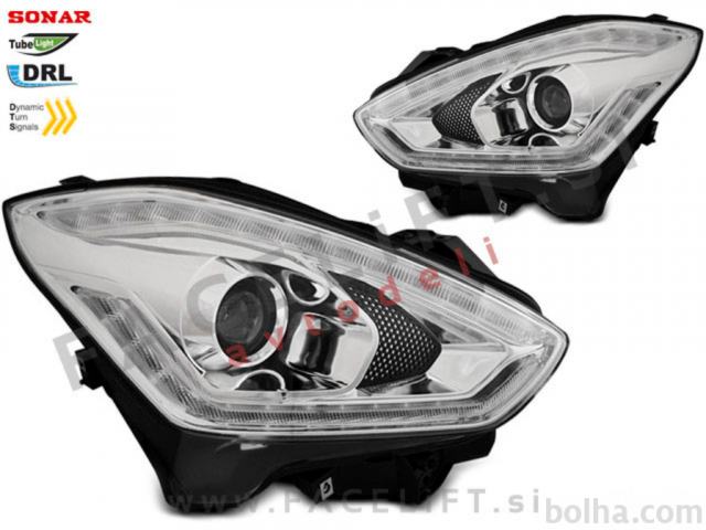 Halogenski žarometi z LED dnevnimi lučmi (DRL), lečo za kratki in dolgi snop in dinamičnim LED smernikom (DTS). Žarometi so novi, z garancijo. V kompletu prejmete par, levi in desni žaromet.