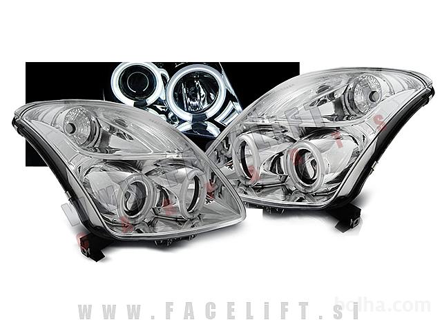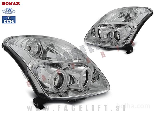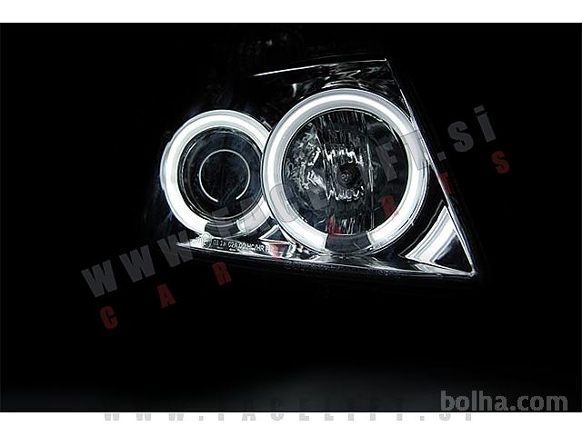 Žarometi z LED CCFL Angel Eyes obročki in lečo. Žarometi so novi, z garancijo. V kompletu prejmete par, levi in desni žaromet.
