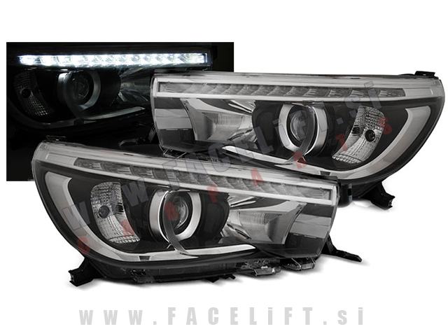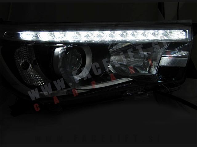 LED žarometi z LED dnevnimi lučmi in lečo. Žarometi so novi, z garancijo. V kompletu prejmete par, levi in desni žaromet.