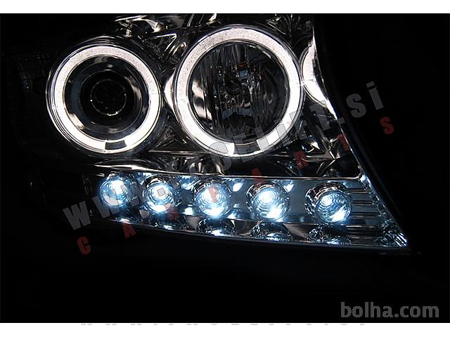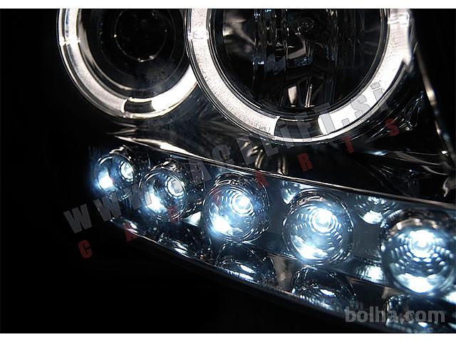 Žarometi z LED Angel Eyes obročki in lečo. Žarometi so novi, z garancijo. V kompletu prejmete par, levi in desni žaromet.