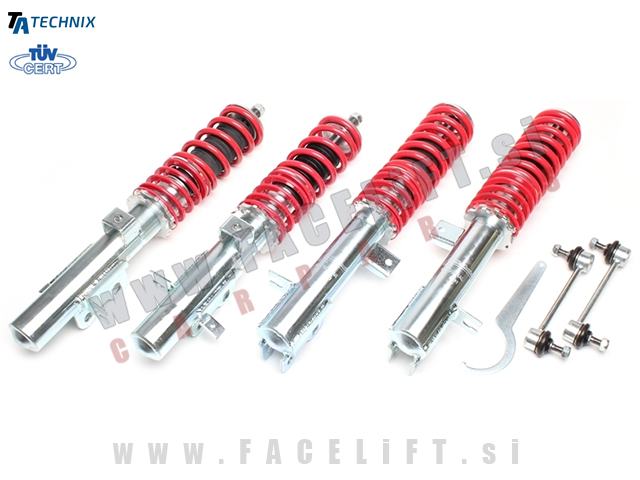 Nastavljivo vzmetenje (gewinde) TA-Technix. Vzmetenje je novo, z garancijo. Komplet vsebuje štiri amortizerje, štiri vzmeti in ključ za nastavitev višine.