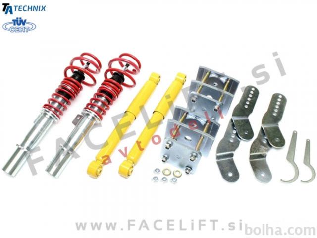 Nastavljivo vzmetenje (gewinde) TA Technix. Vzmetenje je novo, z garancijo. Komplet vsebuje štiri amortizerje, dve vzmeti in ključ za nastavitev višine.