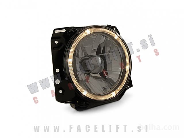 Halogenski žarometi z Angel Eyes obročki pozicijskimi lučmi. Žarometi so novi, z garancijo. V kompletu prejmete par, levi in desni žaromet.