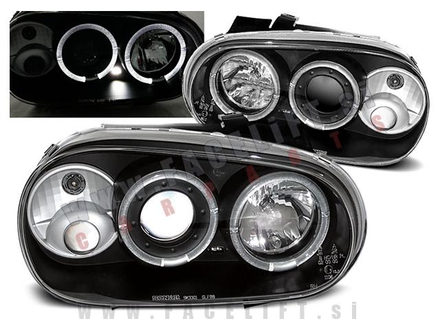 Žarometi z LED Angel Eyes in lečo. Žarometi so novi, z garancijo. V kompletu prejmete par, levi in desni žaromet.