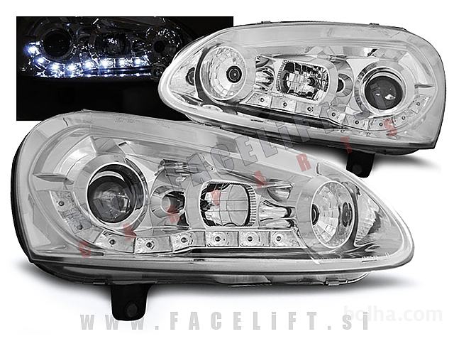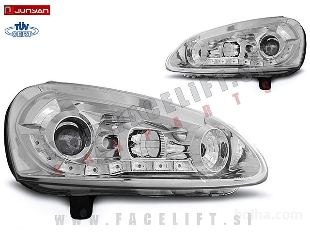 Žarometi z LED pozicijskimi lučmi in lečo. Žarometi so novi, z garancijo. V kompletu prejmete par, levi in desni žaromet.
