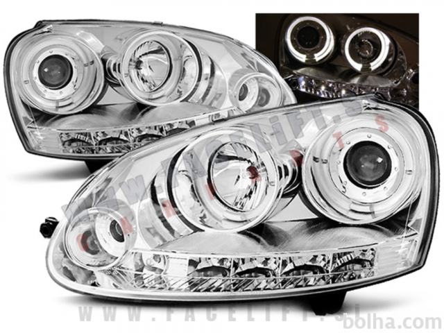 Halogenski žarometi z LED Angel Eyes obročki za pozicijske luči in lečo za kratki snop. Žarometi so novi, z garancijo. V kompletu prejmete par, levi in desni žaromet.