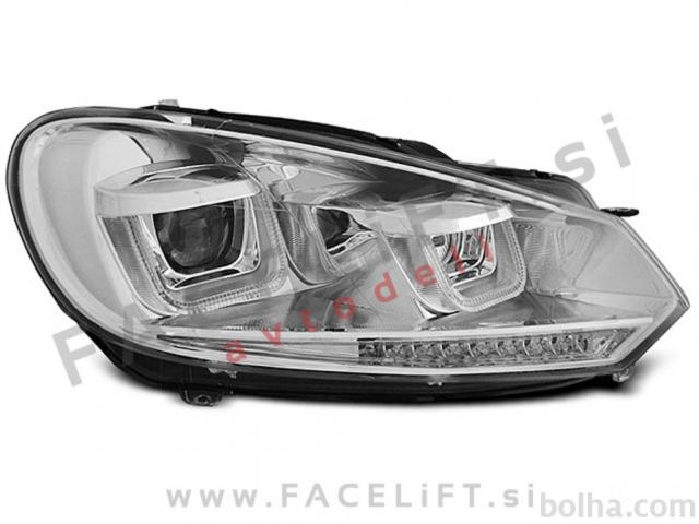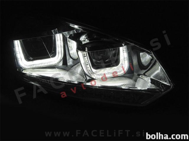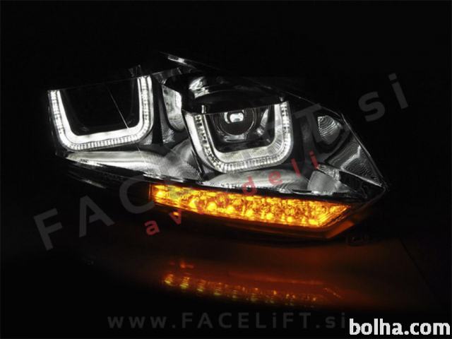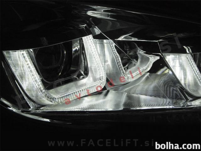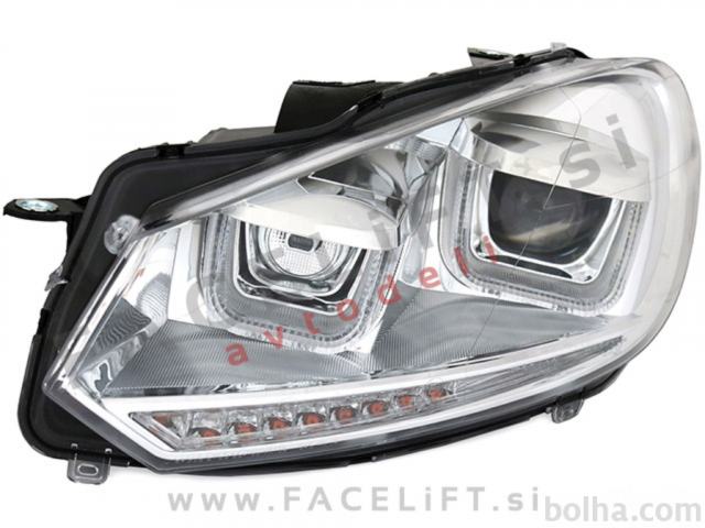 Halogenski žarometi z LED dnevnimi lučmi (DRL), lečo za kratki in dolgi snop in dinamičnim LED smernikom (DTS). Žarometi so novi, z garancijo. V kompletu prejmete par, levi in desni žaromet.