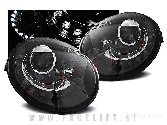 Žarometi LED dnevnimi lučmi in lečo. Žarometi so novi, z garancijo. V kompletu prejmete par, levi in desni žaromet.