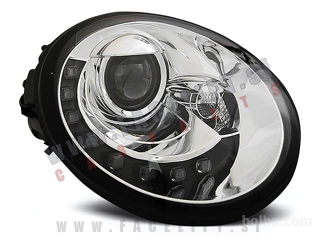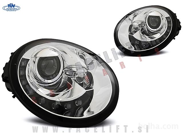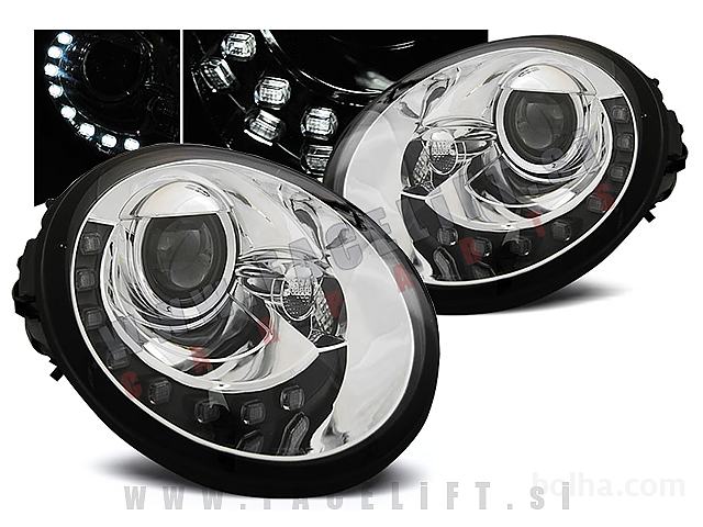 Žarometi LED dnevnimi lučmi in lečo. Žarometi so novi, z garancijo. V kompletu prejmete par, levi in desni žaromet.