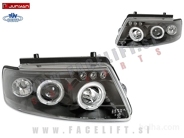 Žarometi z LED Angel Eyes obročki in lečo. Žarometi so novi, z garancijo. V kompletu prejmete par, levi in desni žaromet.