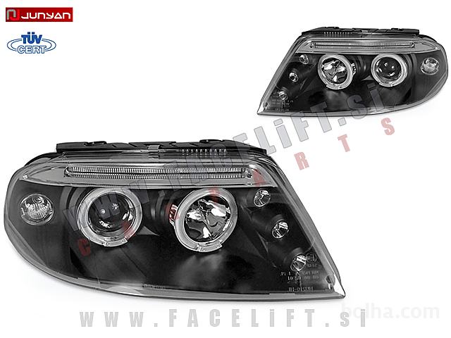 Halogenski žarometi z LED Angel Eyes obročki za pozicijske luči in lečo. Žarometi so novi, z garancijo. V kompletu prejmete par, levi in desni žaromet.