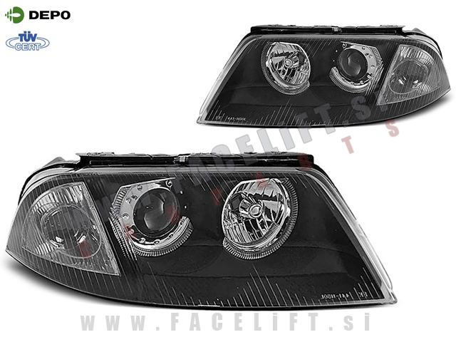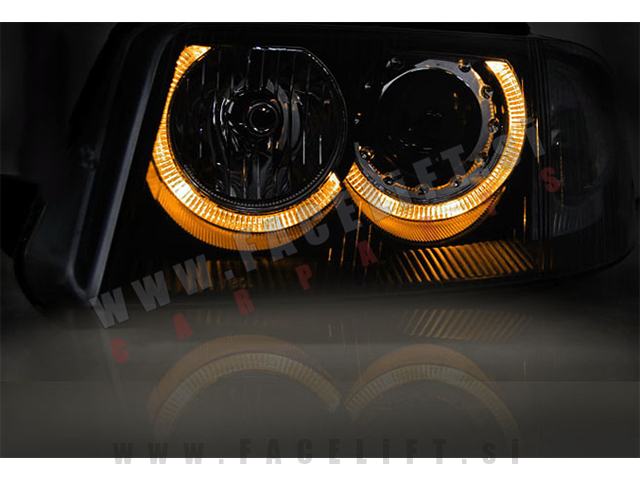 Halogenski žarometi z Angel Eyes pozicijskimi lučmi in lečo. Žarometi so novi, z garancijo. V kompletu prejmete par, levi in desni žaromet.