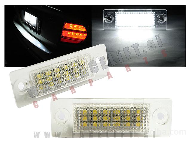 LED osvetlitev registrske tablice z ohišjem. Komplet vsebuje dva kosa. Brez napake na računalniku po montaži.