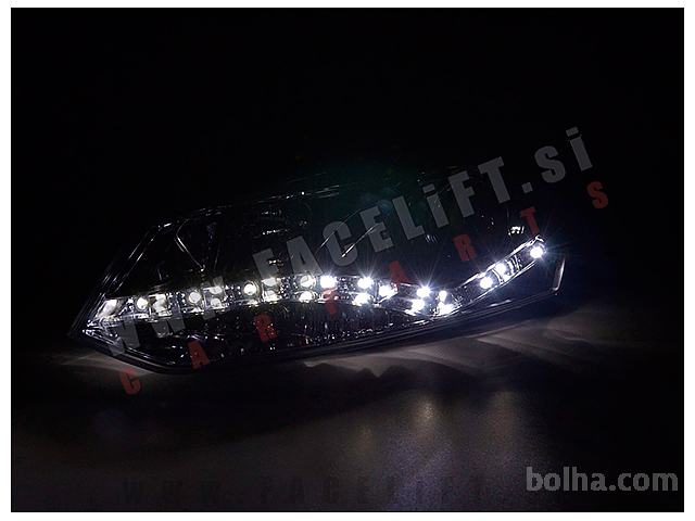 Halogenski žarometi z LED dnevnimi lučmi in lečo. Žarometi so novi, z garancijo. V kompletu prejmete par, levi in desni žaromet.