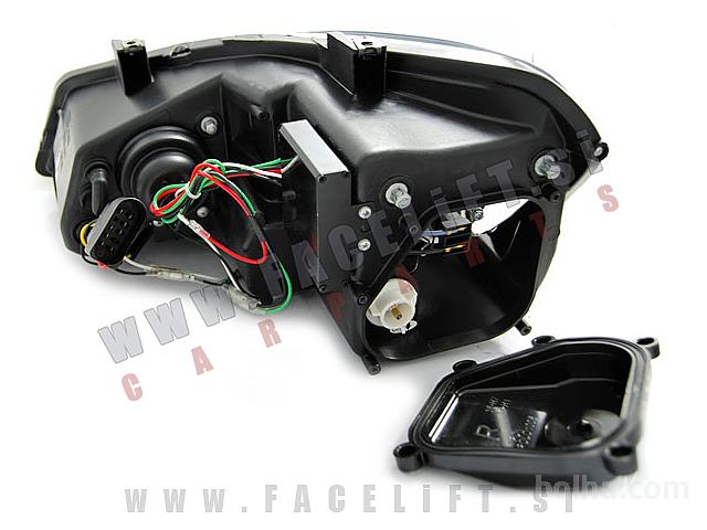 Halogenski žarometi z LED dnevnimi lučmi in lečo. Žarometi so novi, z garancijo. V kompletu prejmete par, levi in desni žaromet.