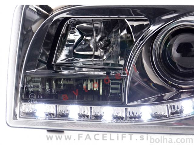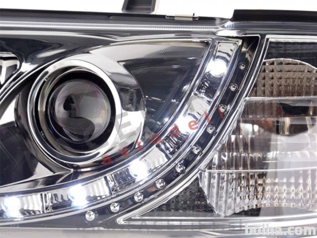 Halogenski žarometi z LED pozicijskimi lučmi in lečo. Žarometi so novi, z garancijo. V kompletu prejmete par, levi in desni žaromet.