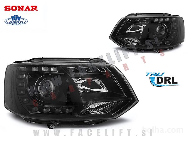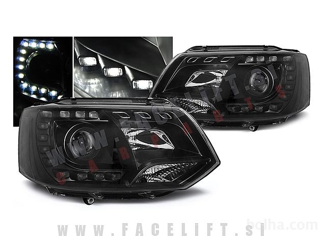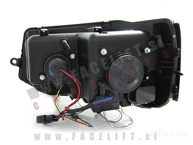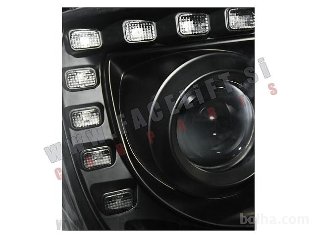 Žarometi z LED dnevnimi lučmi in lečo. Žarometi so novi, z garancijo. V kompletu prejmete par, levi in desni žaromet.