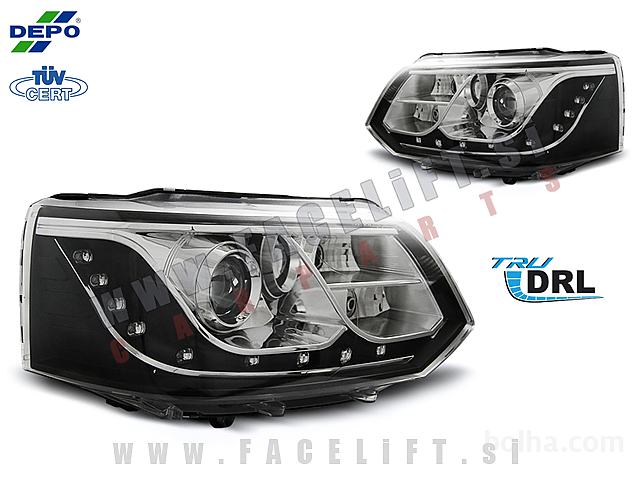Žarometi z LED dnevnimi lučmi in lečo. Žarometi so novi, z garancijo. V kompletu prejmete par, levi in desni žaromet.