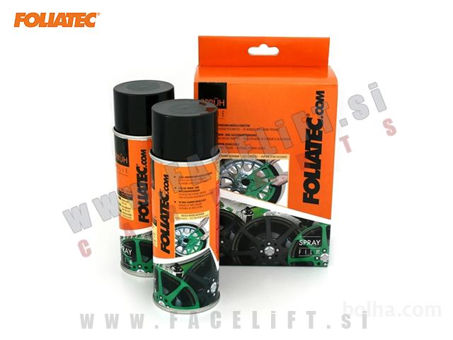 Foliatec folija v spreju. Prevleko enostavno odstranimo, ne pušča sledov, prav tako je odporna na visokotlačne čistilce in udarce kamnov. Komplet vsebuje en sprej - 400ml.