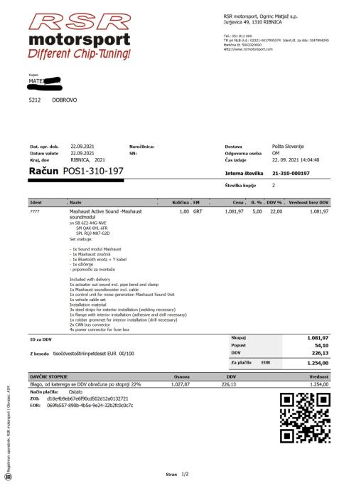 Zaradi menjave avtomobila s takim kjer tega ne bom potreboval prodajam Maxhaust Active Sound kit, kupljen nov v Sloveniji 09/2021.