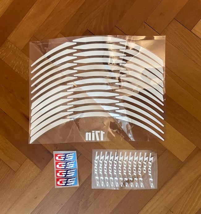 Prodam nalepke za platišča 17col, srebrne-sive barve.
