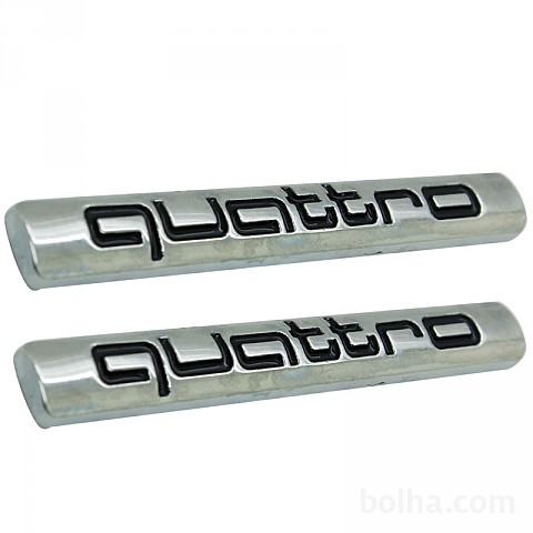 Na voljo so novi kovinski znaki quattro v treh različnih barvnih kombinacijah. Krom in črn napis, krom in rdeč napis ter črn z rdečim napisom. Nameščeno imajo 3M nalepko. Dimenzija je standardna. Možnost pošiljanja.
