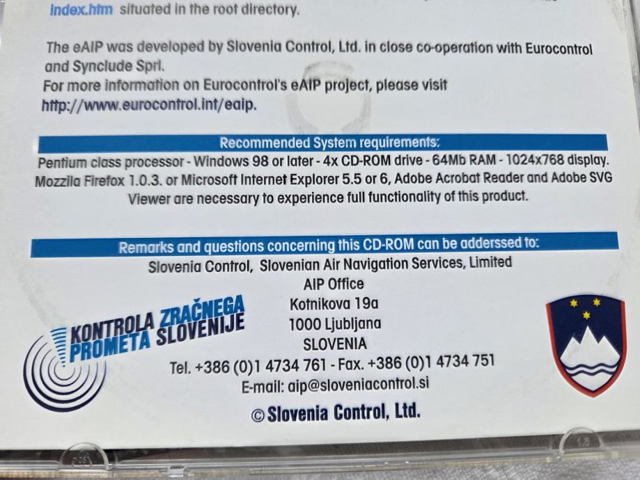 Prodam originalni CD-ROM izdan s strani Kontrole zračnega prometa Slovenije (Slovenia Control).