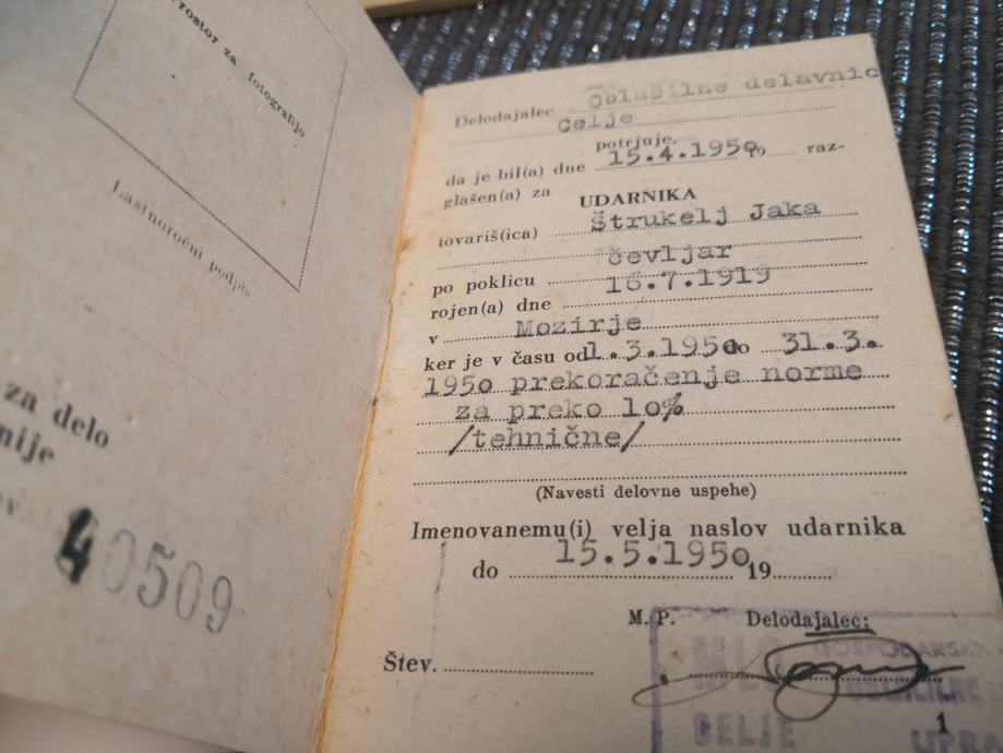 - UDARNIŠKA IZKAZNICA ministrstvo za delo federativne ljudske republike Jugoslavije, 1950, čevljar, čevljarstvo - 29€,