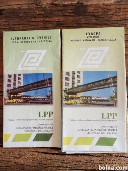 Prodam LPP avtokarto Slovenije (Istra, Kvarner in soseščina) in avtokarto Evropa. Obe sta zelo lepo ohranjeni. Cena za kos.