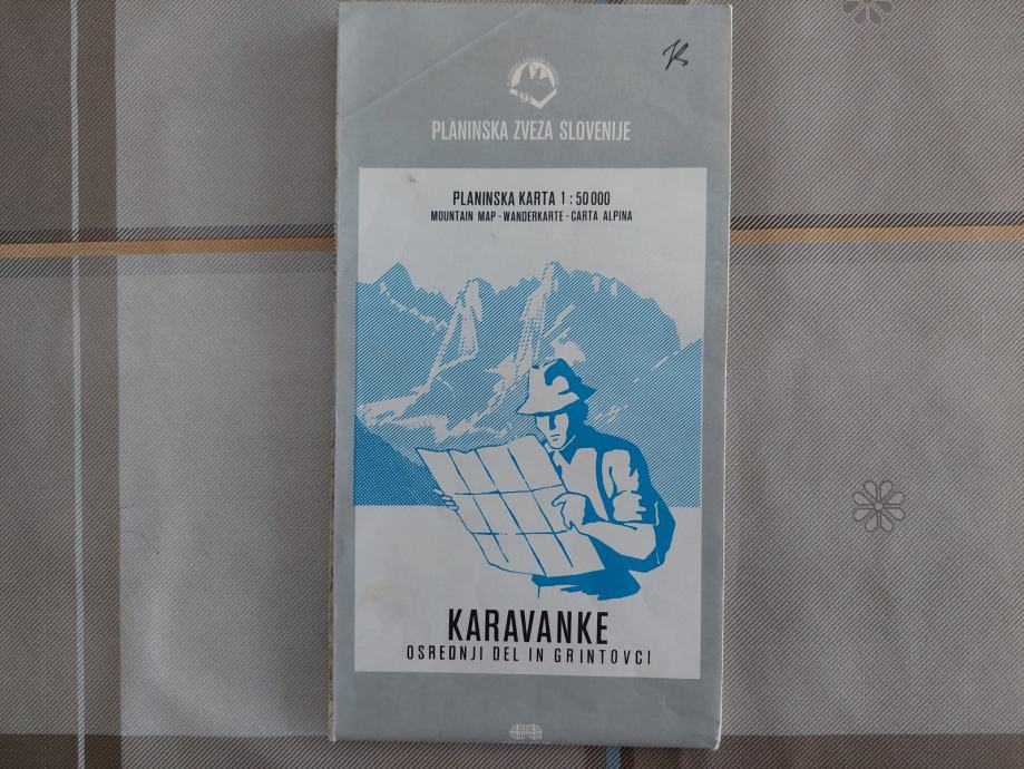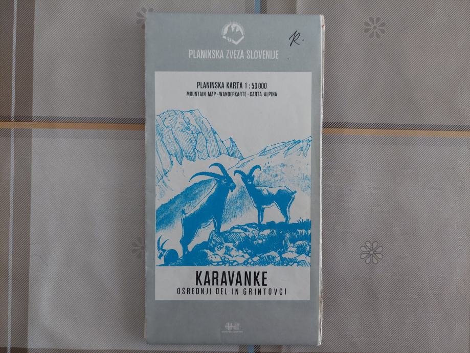 Prodam star zemljevid,Karavanke osrednji del in grintovci,letnik 1988.