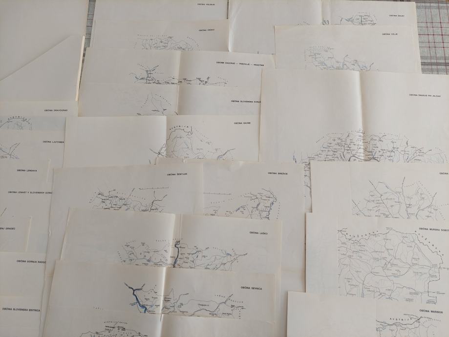 Prodam načrte mest in zemljevidov občin,iz leta okoli 1980,kateri so shranjeni v treh mapah.