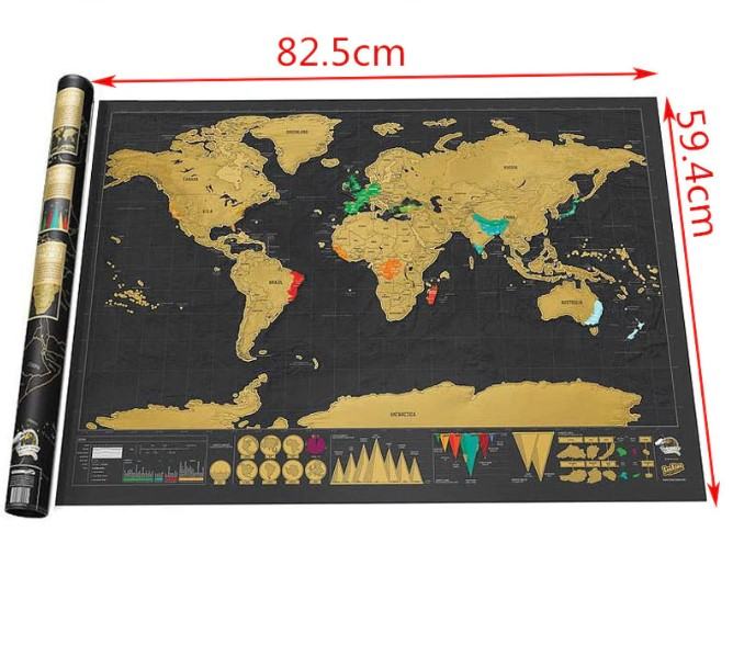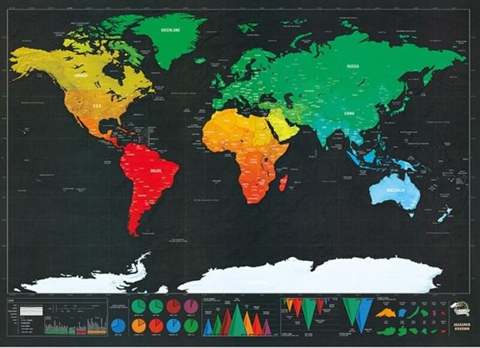 Prodam zemljevid sveta za praskanje na katerem lahko spraskate že obiskane države, ki se obarvajo drugače.