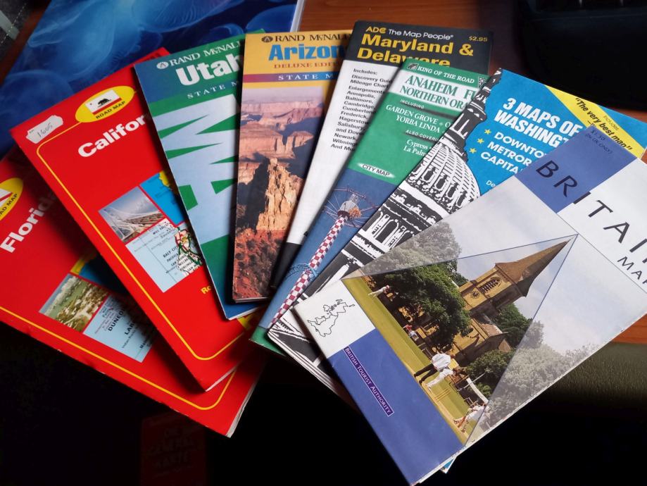 Odlično ohranjeni zemljevidi različnih zveznih držav ZDA ter Washingtona DC in dela Los Angelesa. Dostopni posamezno ali več v paketu. Cena 2 eur za zemljevid. Možno pošiljanje po pošti.