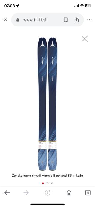 Ugodno prodam nove ženske turne smuči znamke ATOMIC Backland 85 mm širine pod pancarjem. Smuči so brez kož cena 120€ za samo smuči, ki so nove vendar s predmontiranimi luknjami za vezmi FRITSCHI VIPEC EVO 12. Prodam tudi, kot komplet za oboje 380€ Smuči nimajo kož. Kože na spletu stanejo cca 100€.