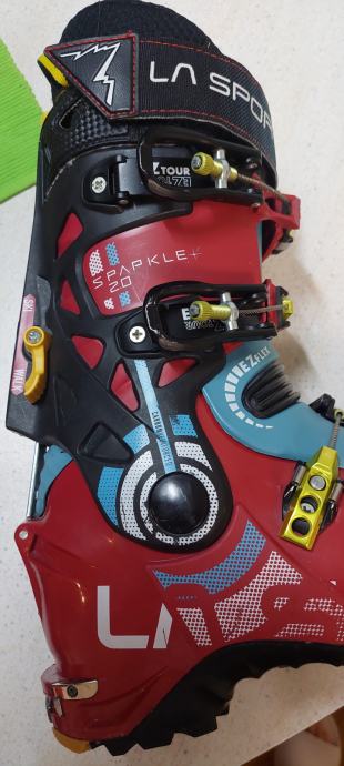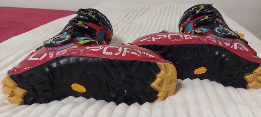 Prodam rabljene turne pancarje la sportiva sparkle 2.0, velikost 26.5 (noga 40), izredno lahki (1286 g) in prožni z vibram podplatom in flex 115.