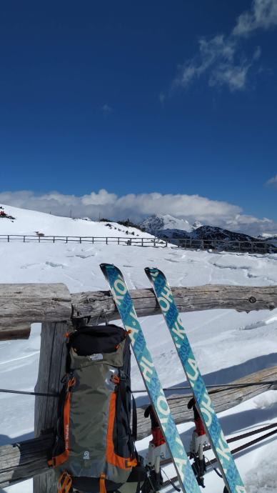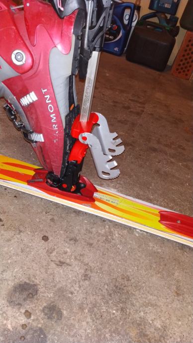 Vezi Fritschi Diamir. Tudi brezhibne in s pripadajočimi srenači. Srenači na teh vezeh so enkratni - lahko so nataknjeni celo turo in jih zasukaš v uporabo, ko jih potrebuješ. Vezi držijo tudi klasične alpske čevlje in so izjemno močne - freeride vezi.