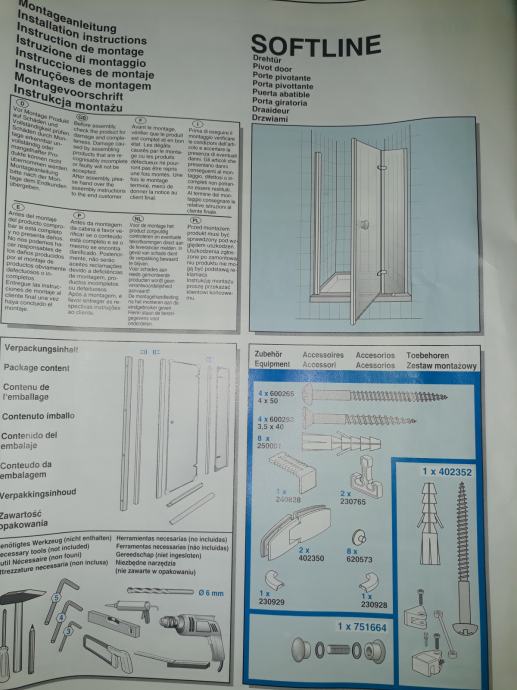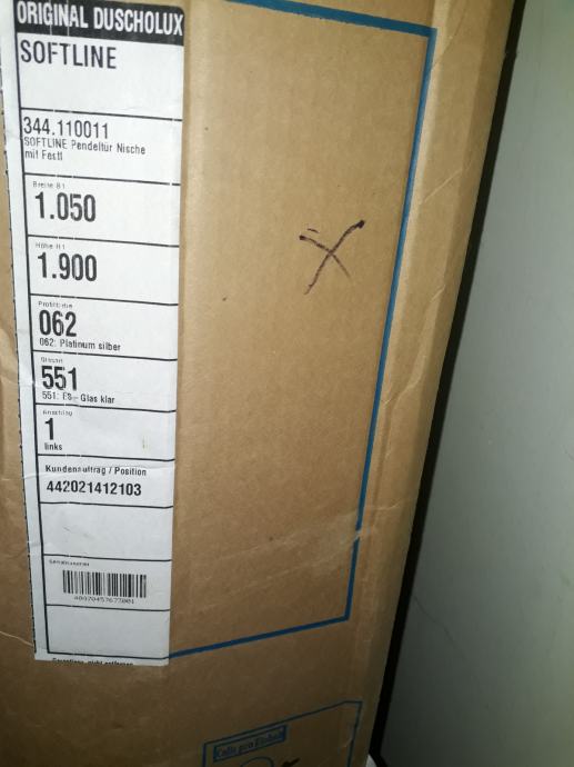 Prodam nova še zapakirana (škatla je odprta) tuš vrata s stranskim fiksnim delom DUSCHOLUX Softline 190x105cm.
