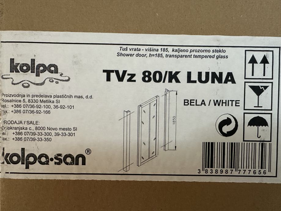 Prodam nova tuš vrata KOLPA SAN TVz 80/K LUNA bele barve, kaljeno prozorno steklo